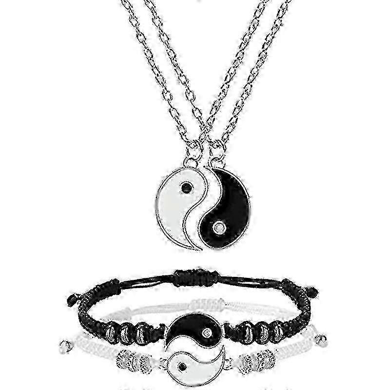 4 Pcs Matching Tai Chi Braided Bracelet Necklace Set Adjustable Rope Bracelets