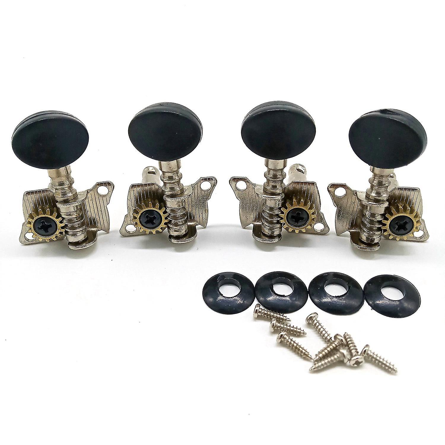 4 Pieces Metal Opened Ukulele Uke Tuning Pegs Tuners Round Cap Black