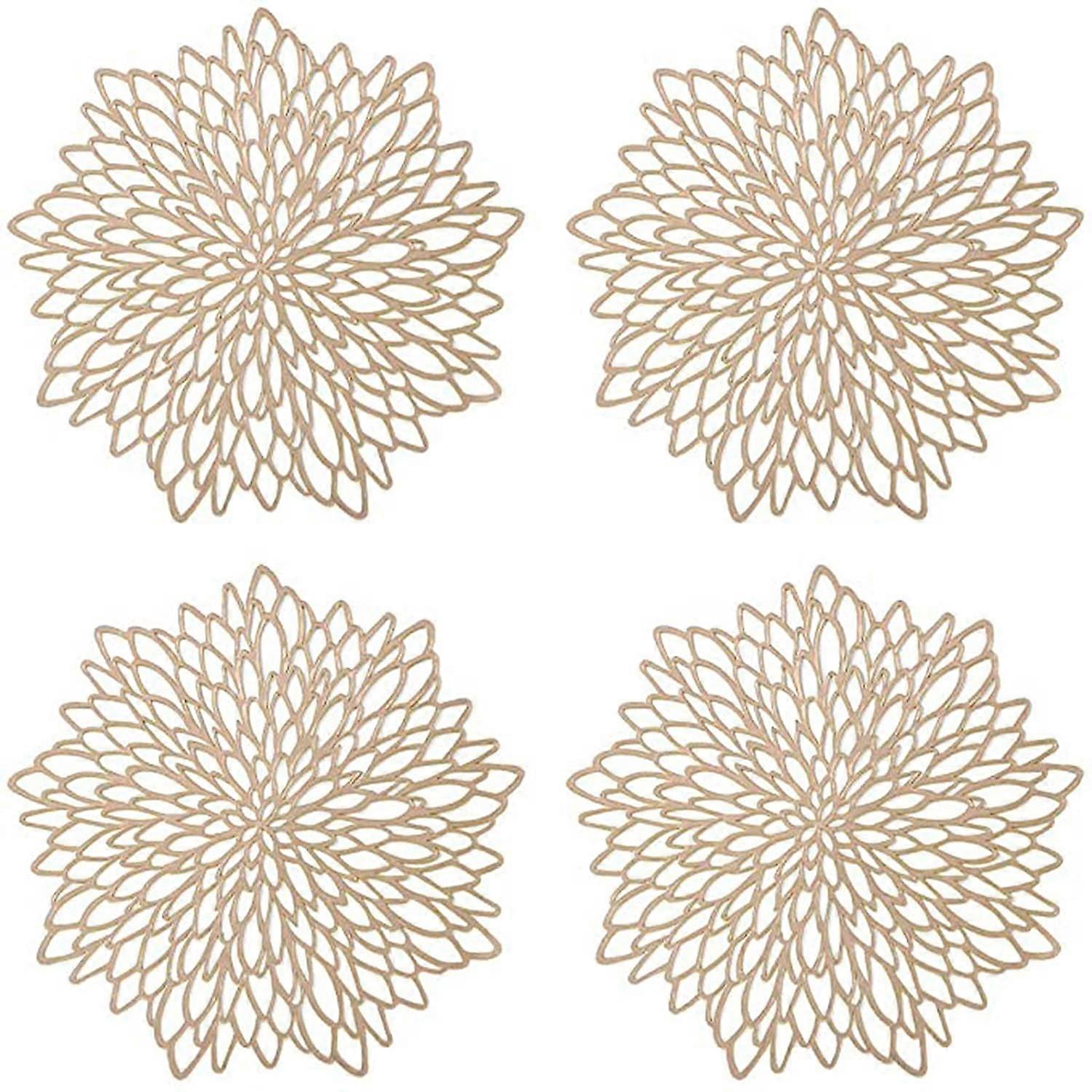 4 Pieces Gold Placemat, Hollow Out Round Placemat, Round Placemats Plastic Table Mat, Used for Heat