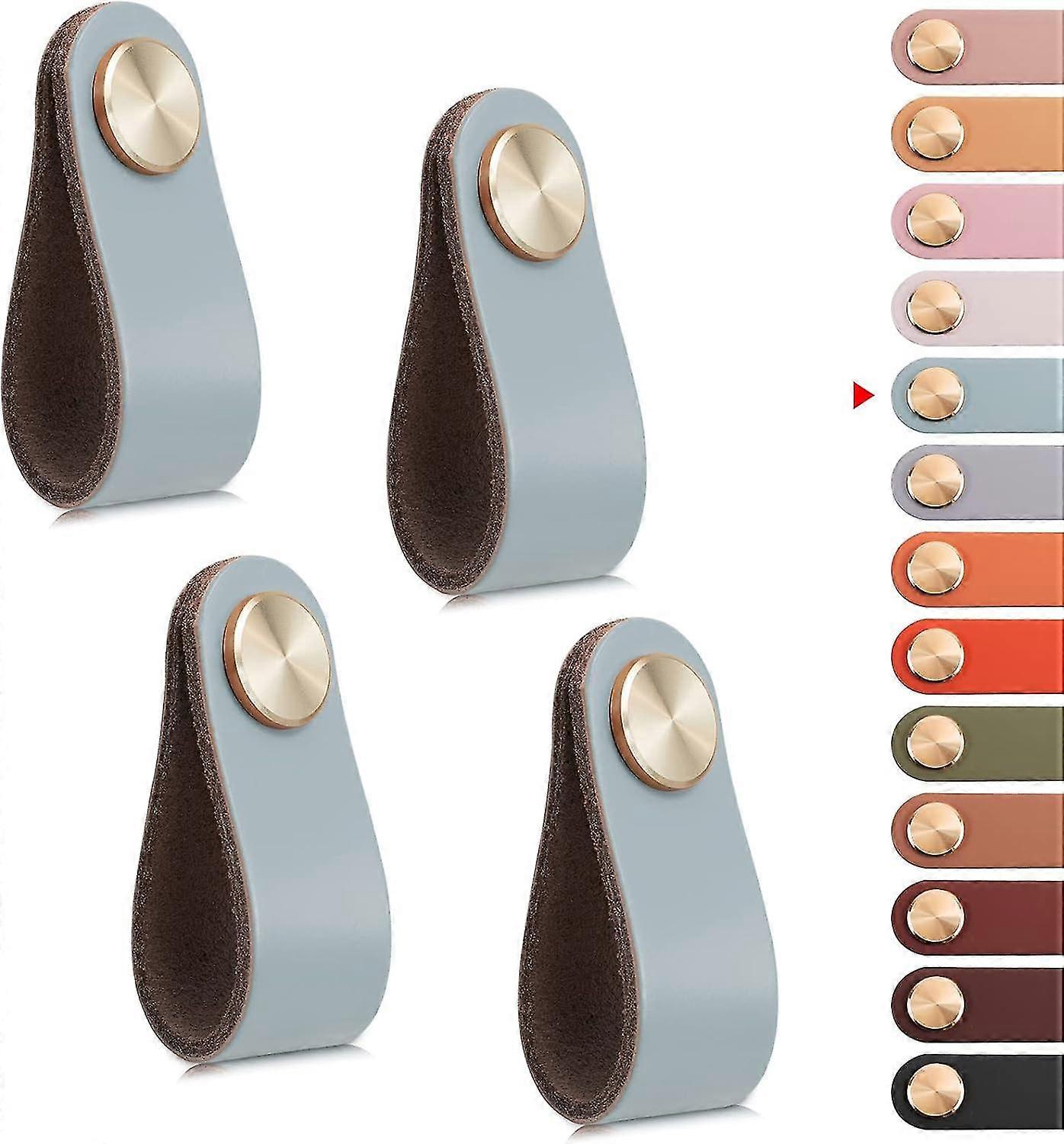 4pcs Leather Furniture Handle, Cupboard Door Knob Leather Handle Drawer Knob(blue, Single Hole)
