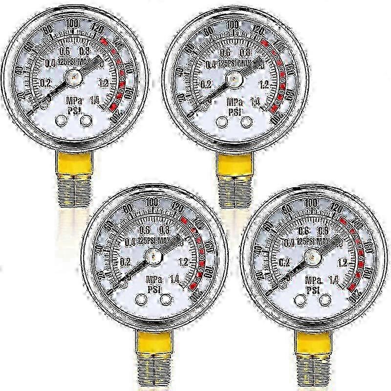 4Pcs 0-200 Psi Air Pressure Gauge 1/8In Male NPT Connection Air Gauge Lower Side Mount 1.57In Dial Air Compressor Gauge