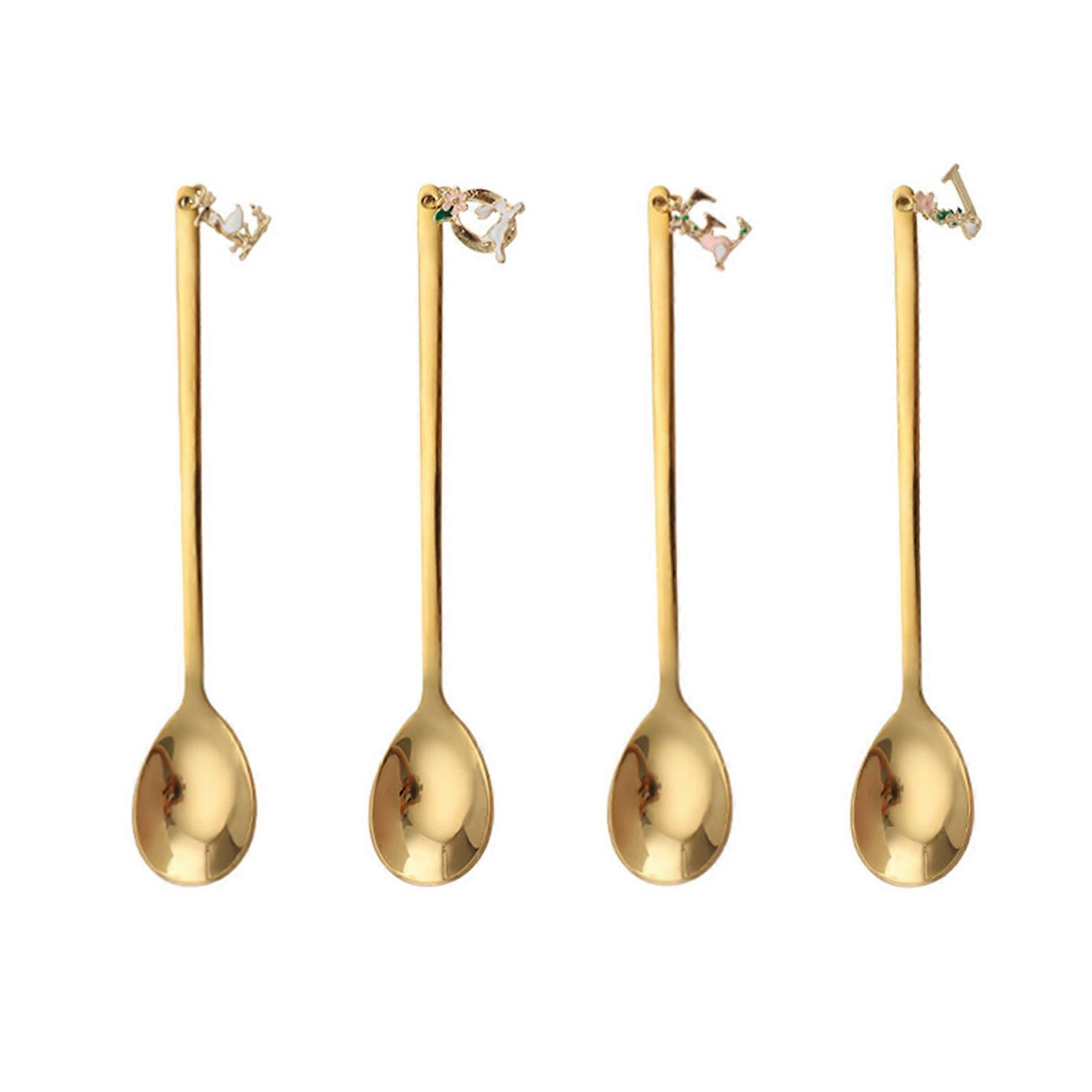 4 Pieces Stainless Steel Stirring Spoons for Creative Pendant Tea Coffee Dessert Scoop for Restaurant, Home, Bar, Party