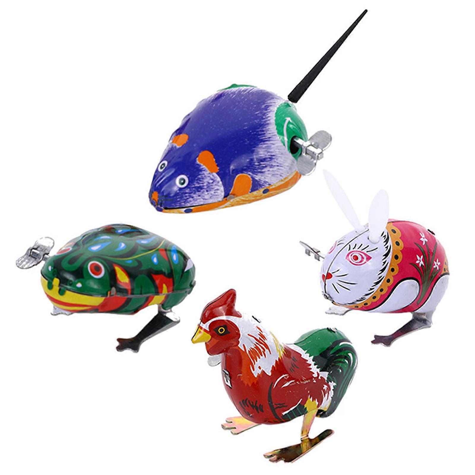 4Pcs Iron Animal Wind Up Toys Funny Jumping Playthings Kids Toys Mixed Color