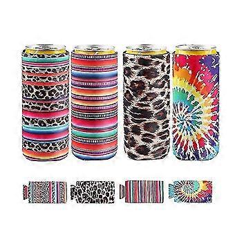 4 pieces of neoprene thin beer can sleeves, insulator beer can cooling cover suitable for light and thin energy drink beer cans 4 pieces of cooling insulated beer hood, size: 14.8 x 8.38 cm (height x diameter) in 4 color patterns, as shown in the picture. Fits most thin cans or bottles, keep warm and cool, and let your hands dry. Please confirm the size before purchasing. The bottle sleeve is made of durable neoprene. Each sleeve has stitched fabric seams to increase top durability. Easy to put on and take off, foldable, convenient for storage, folded flat, convenient for storage and drying. Very suitable for birthday parties, knitting parties, football games, BBQ, family picnics, bachelor parties, graduation parties, etc. Contain: 4X cooling and heat insulation cup cover