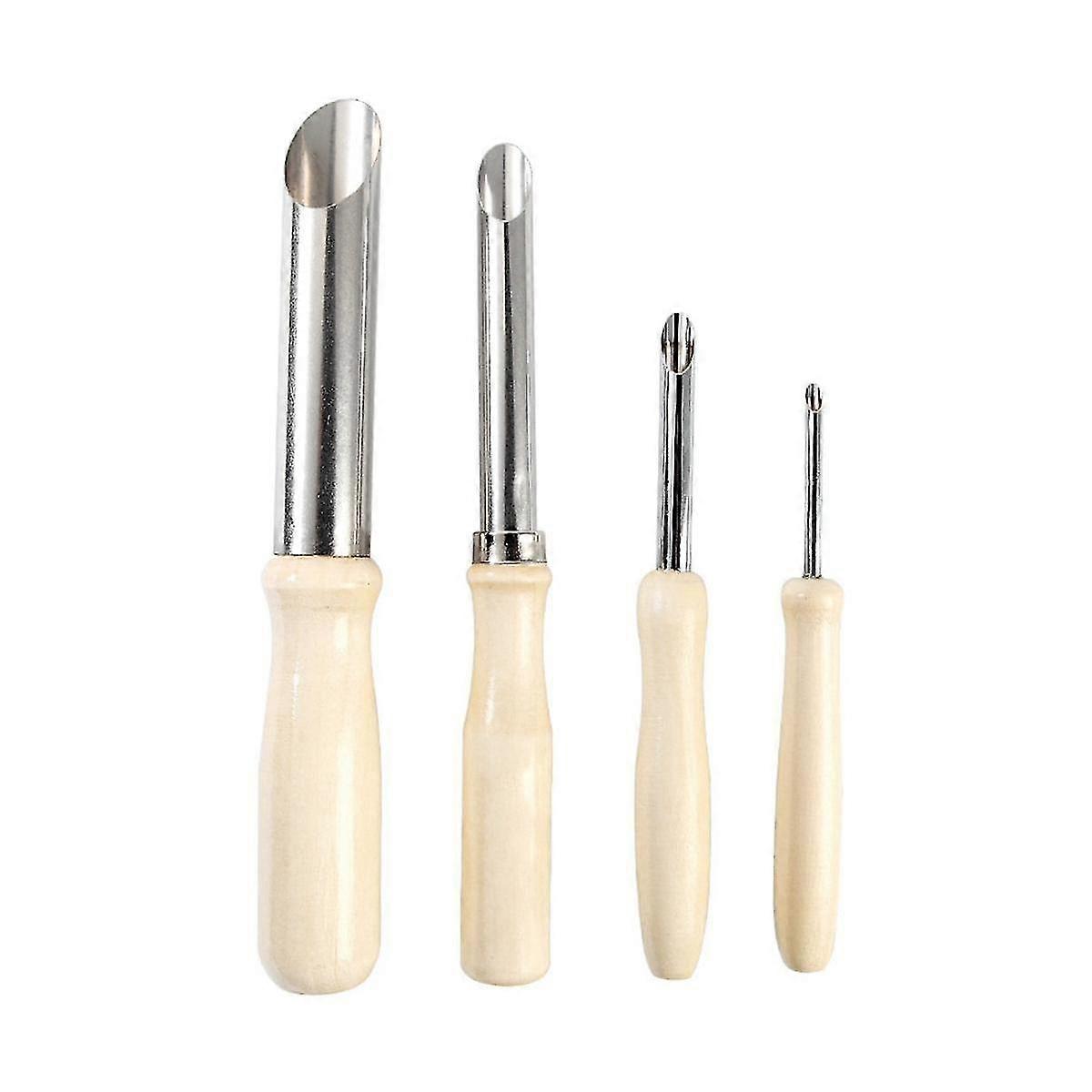 4 Pieces Of Ceramic Tools Stainless Steel Punch Pot Hole Drilling Round Practical Wooden Handle Man