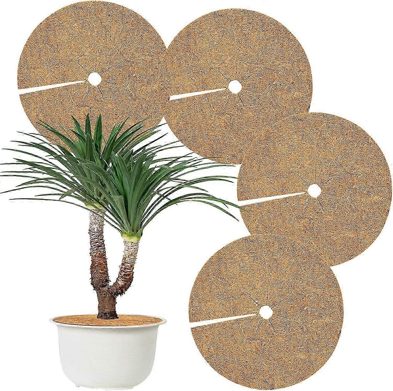 4 PCS Coconut Fiber Mulching Discs 45cm Coir Mat Durable Plants Plant Protection Disc Easy Cut for Plant Protection Garden Balcony Flowerpot