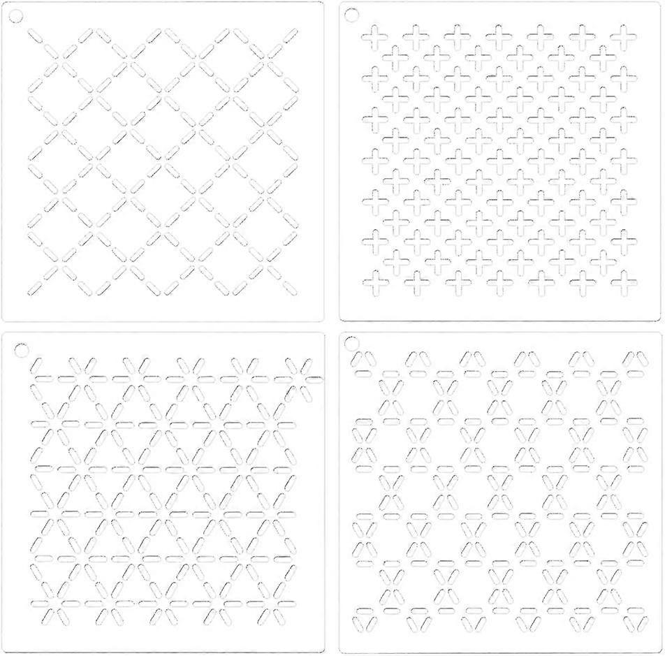 4Pcs Acrylic Sashiko Stencil Cross Acrylic Embroidery Tool Drawing Line Template for Hand Quilting and Embroidery 2.5mm Thick