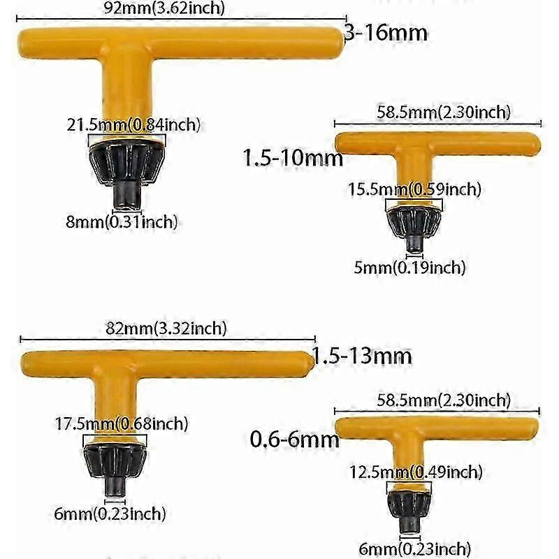 4 Pieces Yellow Steel Electric Drill Chuck Keys 6mm 10mm 13mm 16mm Universal Chuck Key Universal T-shaped Drill Key for Drill Tightening
