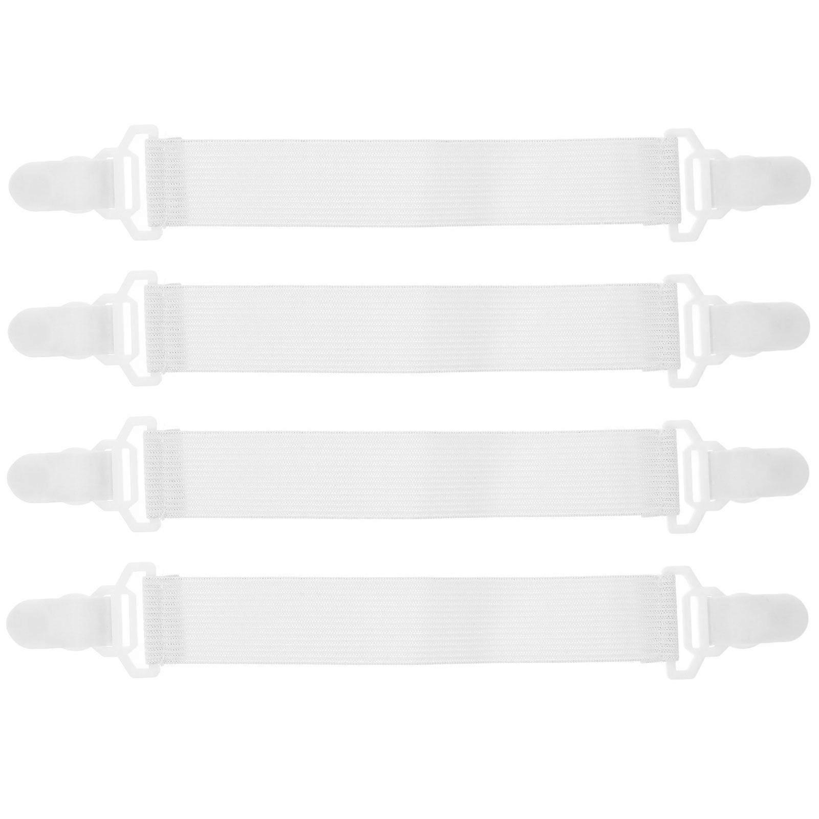 4pcs Garter Style Elastic Bed Sheet Grippers Garter Fastener Straps with Rubber Button Hook & Clasp (White)