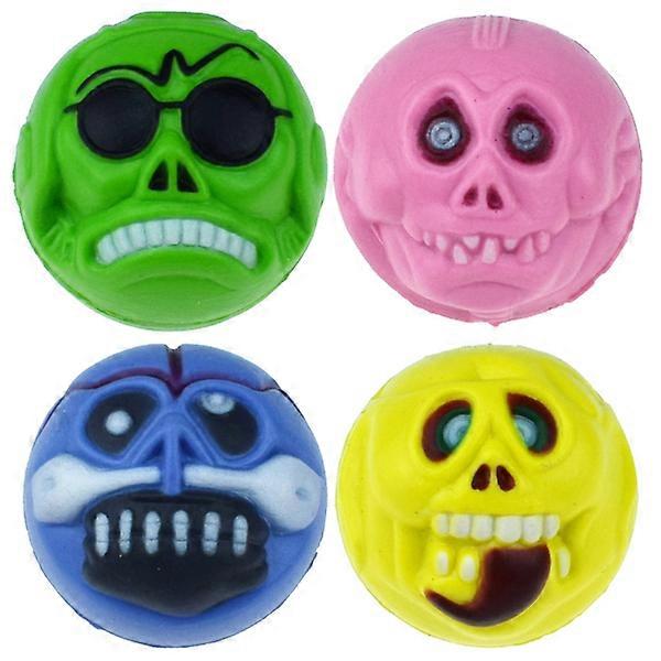4Pcs Halloween Props Rubber Elastic Ball Scary Face Shaped Bouncy Balls Jumping Balls Random Color