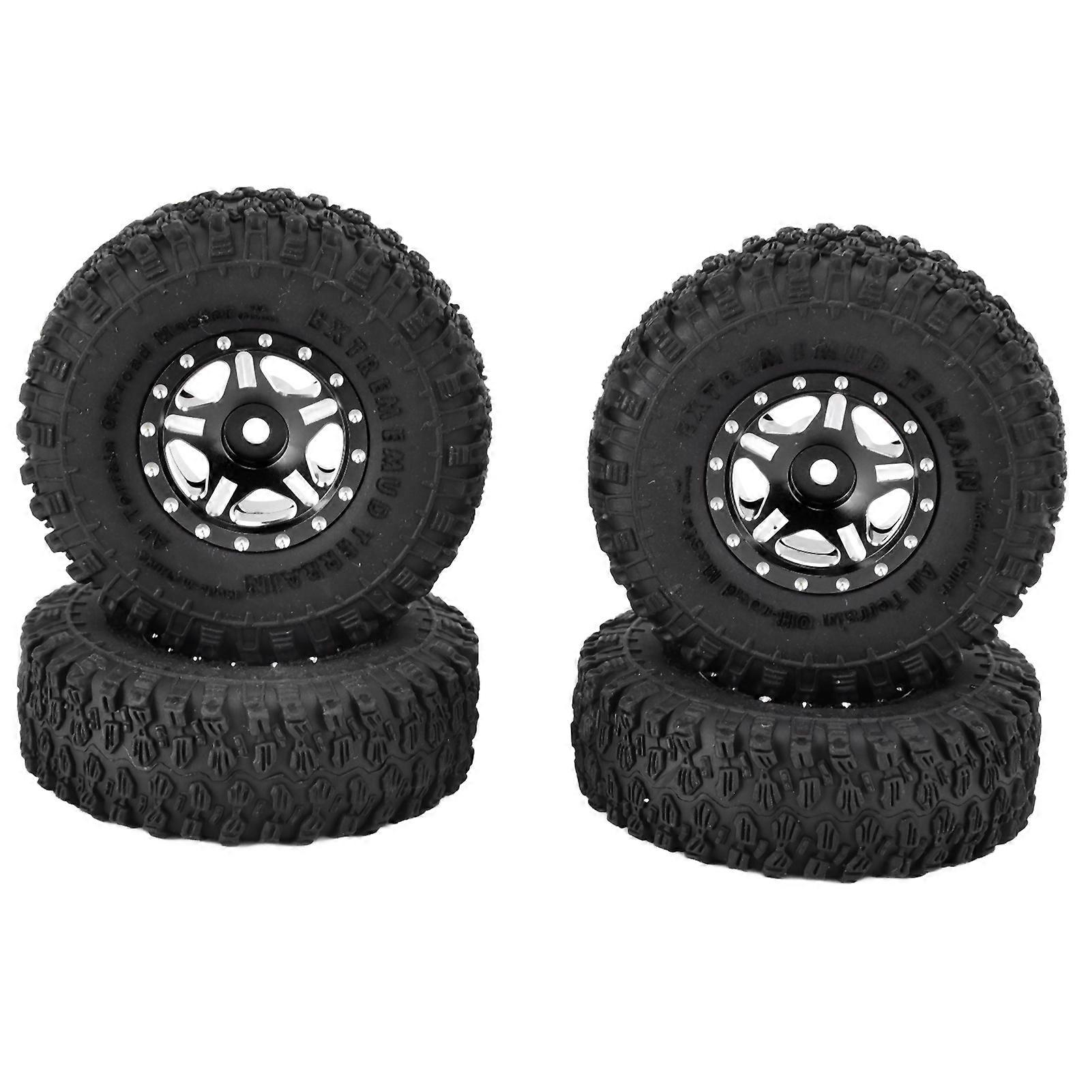 4pcs 1in Rubber Tires Aluminum Alloy Wheel Rims Fit for Axial SCX24 90081 AXI00001 AXI00002 1/24 Crawler CarBlack