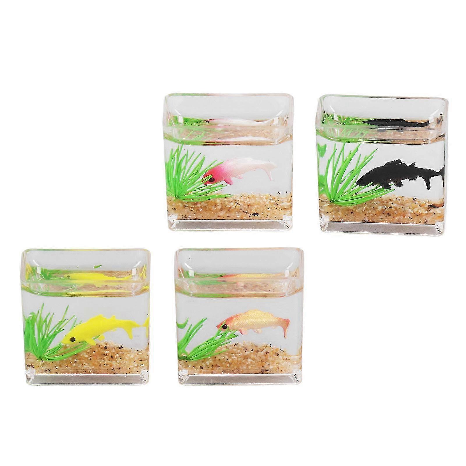4pcs 1:12 Dollhouse Fish Tank Simulated Vivid Dollhouse Miniature Fish Bowl Decoration Accessories