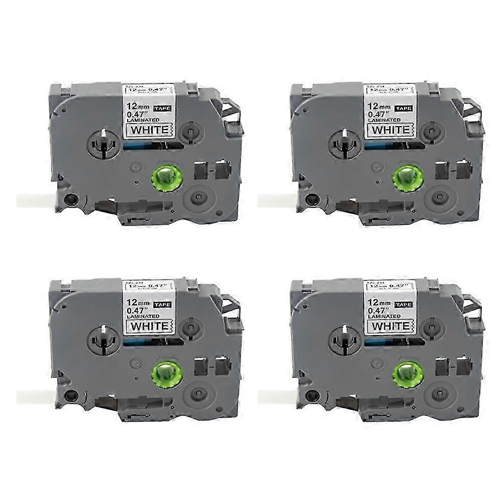 4 Pcs 12mm Label Ribbon for Brother 12mm Standard Compatible 8M with TZC231 (Black on White)