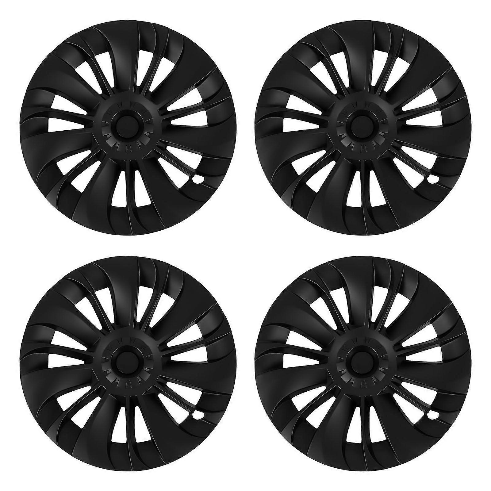 4pcs 19 Inch Hubcap Asymmetrical Design Wheel Hub Cap Replacement for Tesla Model Y 2020 to 2023 Matte Black