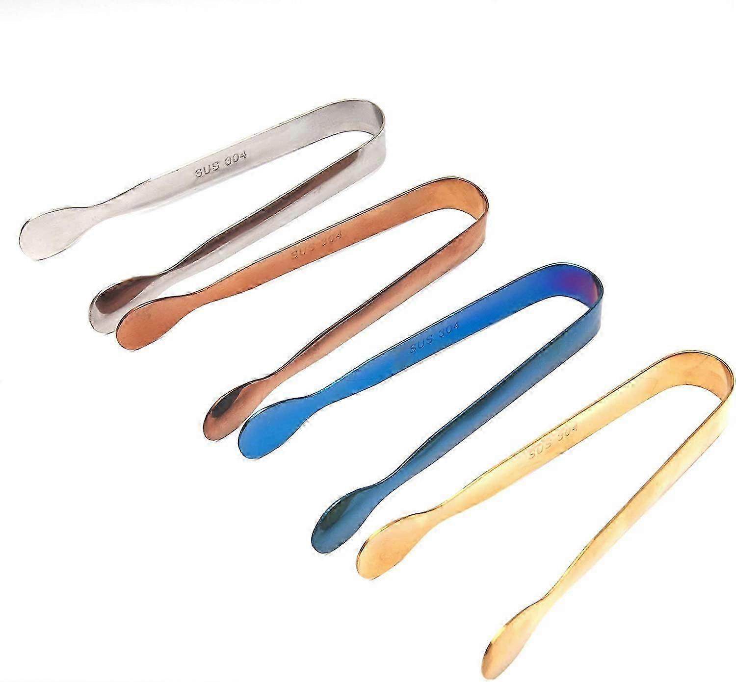 4 Pieces 304 Stainless Steel Multicolor Cube Ice Clamps, Gold Plated Round Head Rock Sugar Tongs, Hot Towels and Sugar Tongs for Family Restaurant Bar