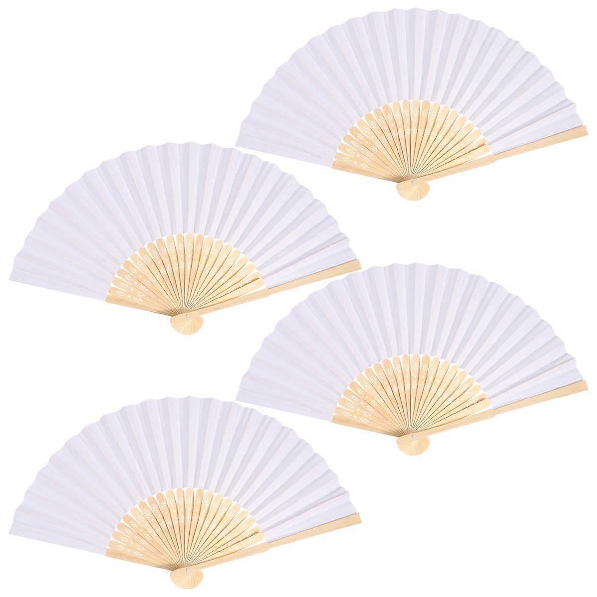 4pcs 7 Inches Folding Fan Blank Fan Decor Kids DIY Painting Prop Performance Fan (White)