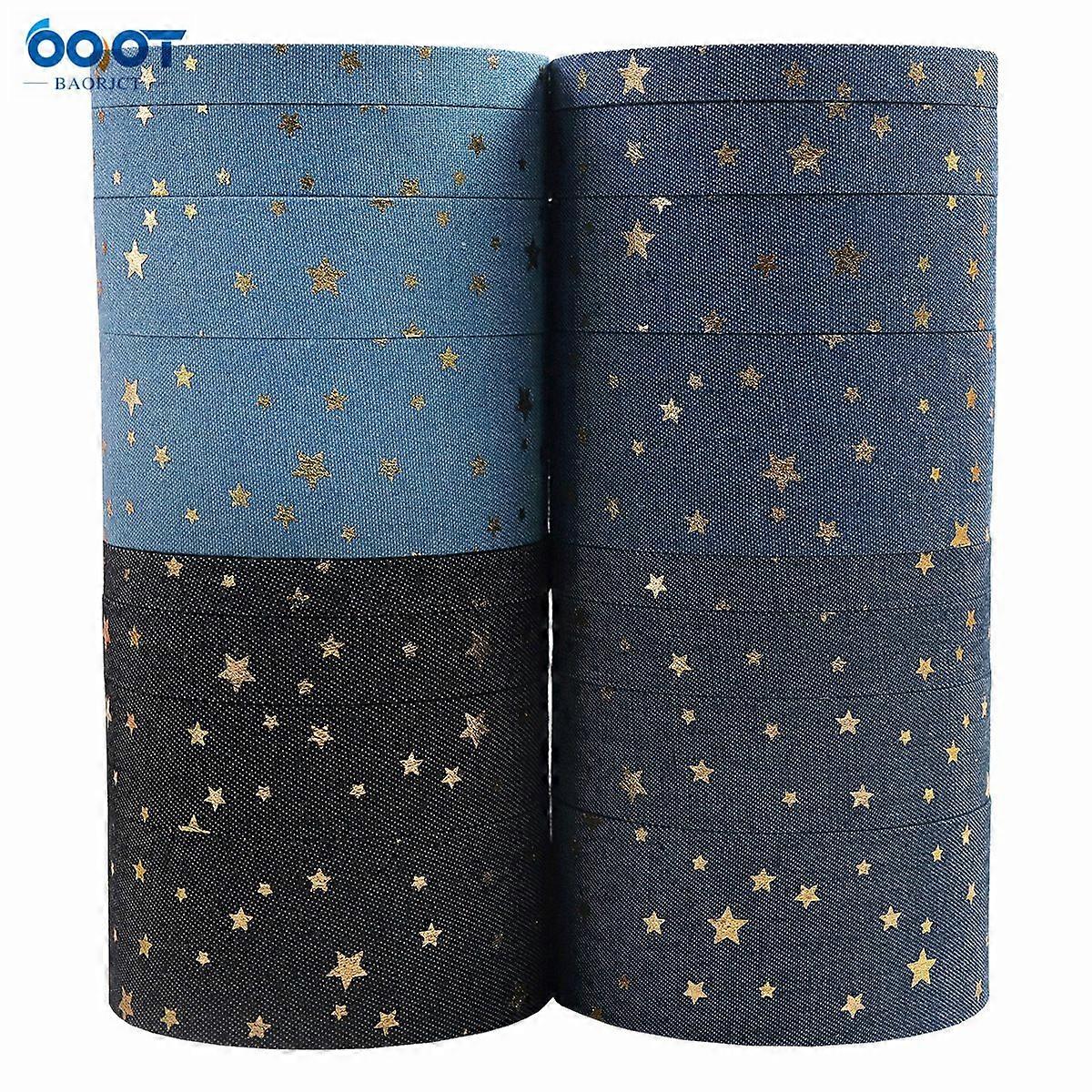 4 Rolls Denim Fabric Ribbon With Gold Star Print For Diy Crafts Sewing Present Wrapping Clothes Accessories Western Style Decorations 1CM