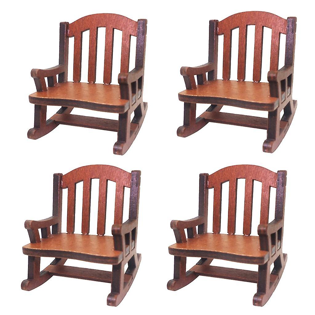 4 Pieces 1/12 Dollhouse Miniature Furniture Wooden Rocking Chair Model Decor