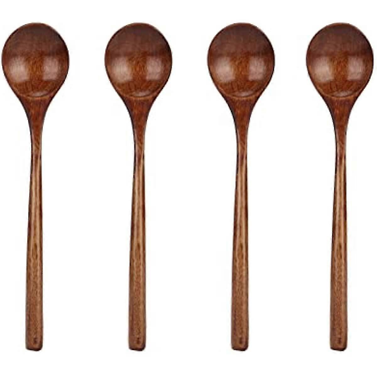 4pcs Wooden Spoons, Long Handle Exquisite Japanese Style Large Mouth Wooden Soup Spoon For Kitchen Cooking, Mixing Stirring, 2 X 9.4in
