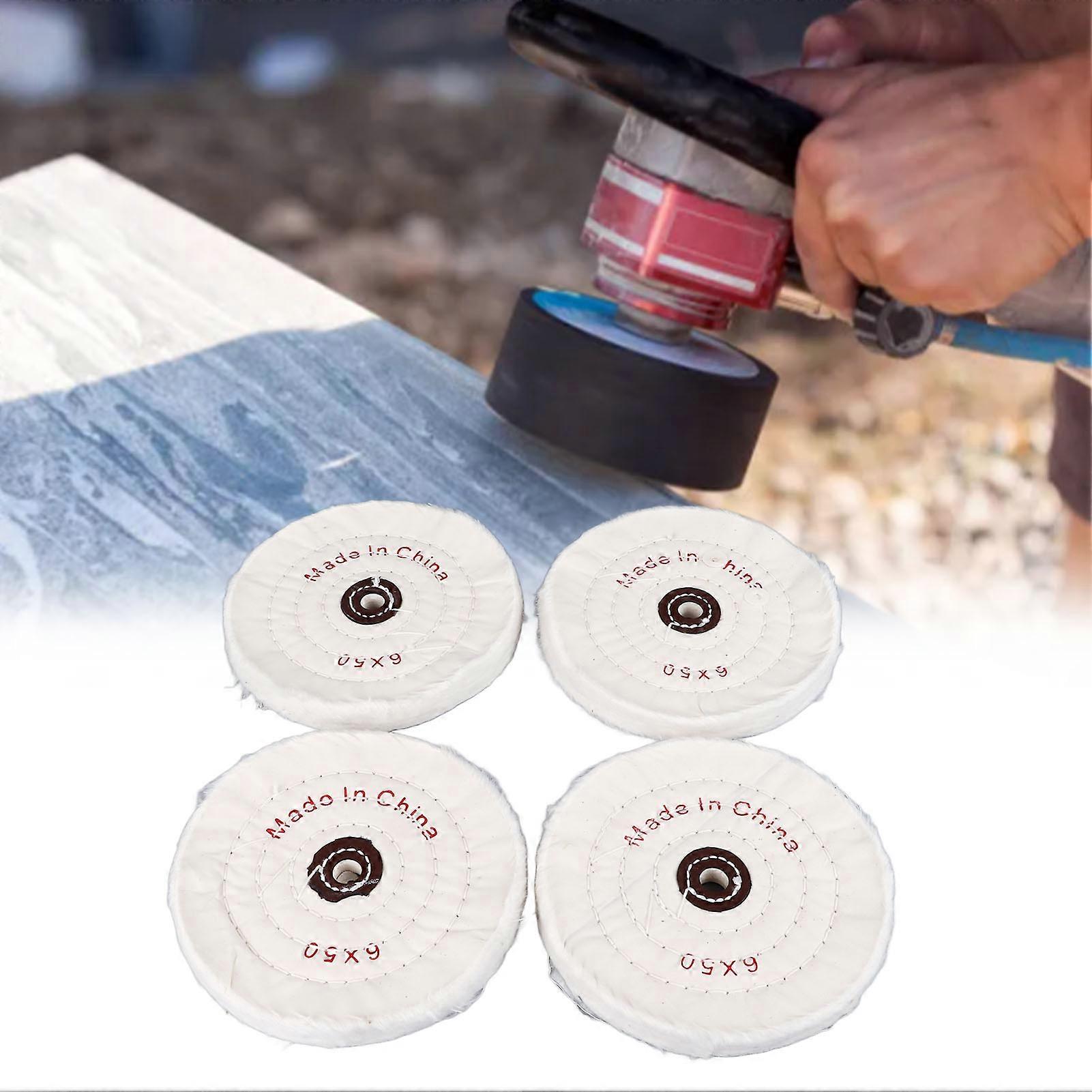 4PCS 6 Inch Buffing Wheels with 1.2cm Arbor Hole White Cloth Polishing Cleaning Wheel Pads for Bench Grinder
