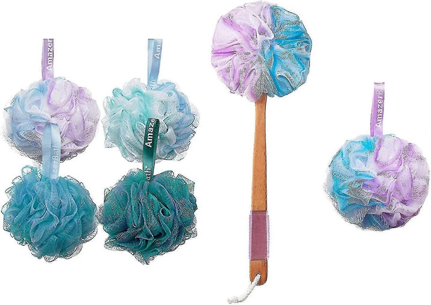 Tighter knot - These loofah sponges adopt a new technique of knotting, making every sponge core extremely firm and durable. They will not easily fall apart. Suitable size - Each loofah sponge is suitable for most adults and kids. They are the ideal size for exfoliating dirt easily and creating richer and longer lathers. Long wooden handle: The wooden handle is made of durable beech wood and covered with a transparent waterproof layer on the surface. The textured rubber sleeve is non-slip and offers you a better grip. Soft material: The shower sponge is made of soft PE material, which is strong and not easily deformed. ing balls can apply more cleansing strength to the skin area and keep the skin healthy. Package included: You will get 4 pack loofahs balls, 1 pack long handle loofah and 1 pack extra loofah balls.