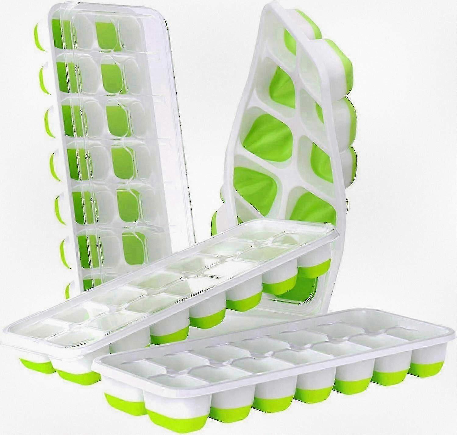 4-Pack Silicone Ice Cube Molds with Easy Release, Makes 14 Cubes per Tray