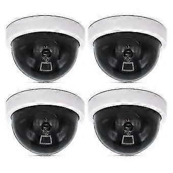 4 Pcs Dummy Security CCTV Dome Camera with Red LED Light Sticker Decals, Flashing and Security-like Functionality