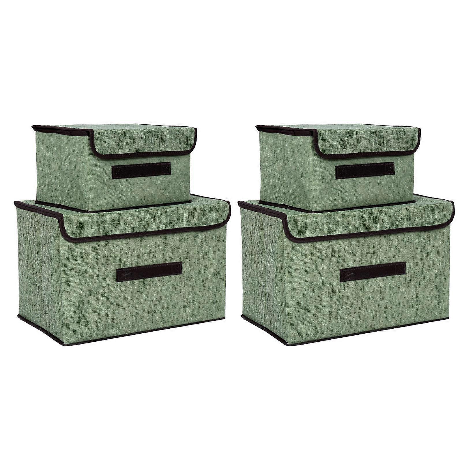 4 Pcs Non Woven Storage Box Case Dustproof Collapsible Two Large And Two Small For Household Home Light Green