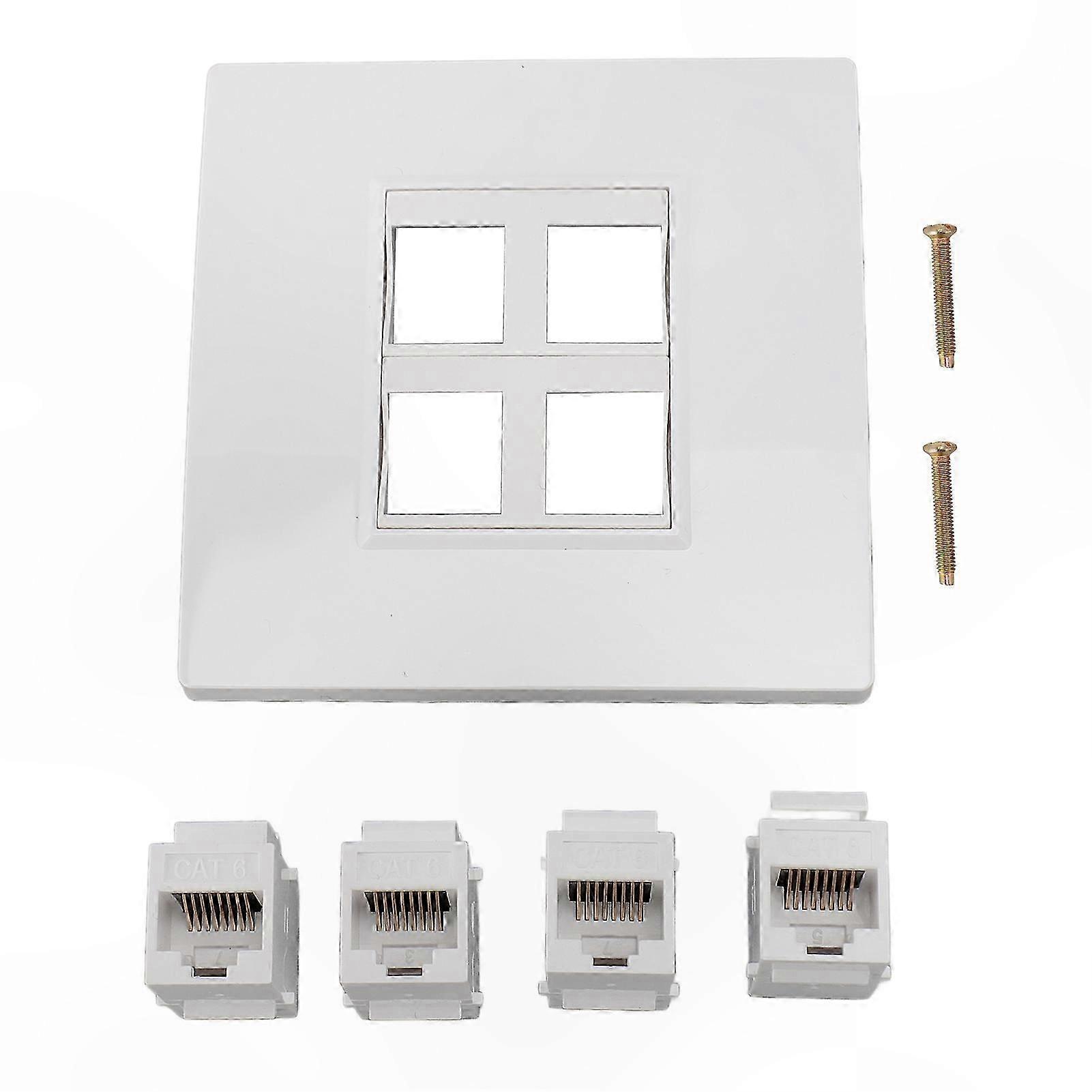 4-Port Cat6 Wall Plate Adapter - Keystone Jack for CAT5 CAT5E CAT6A Networking Solutions