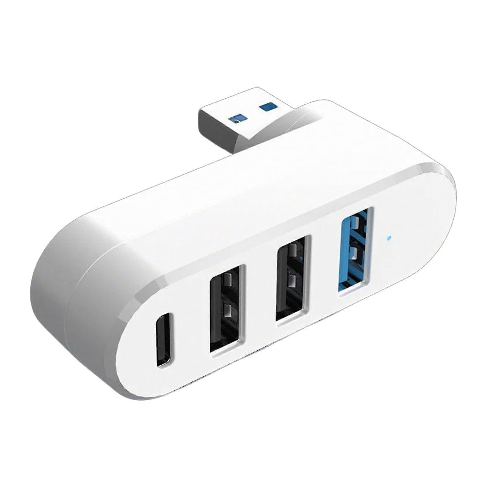 4 Port USB 3.0 Hub 180° Degree Rotatable USB Splitter with 3 USB Port 1 USB C Powered Data Port USB Extender for Laptop White