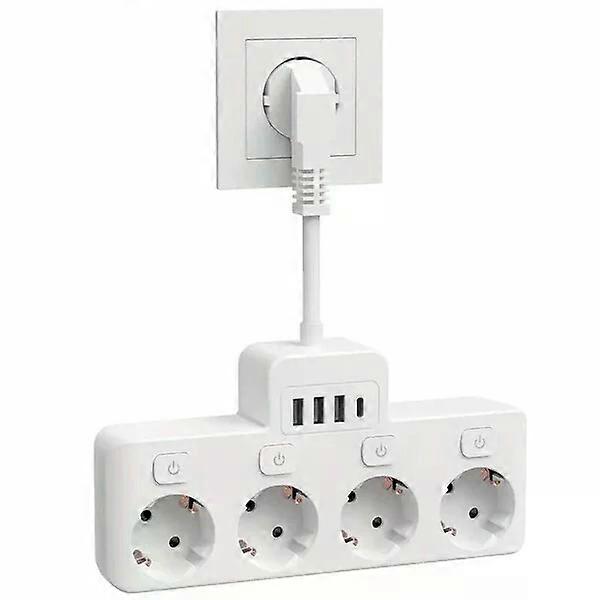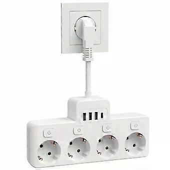 4-port USB power hub with 4 EU sockets and independent switches for energy saving