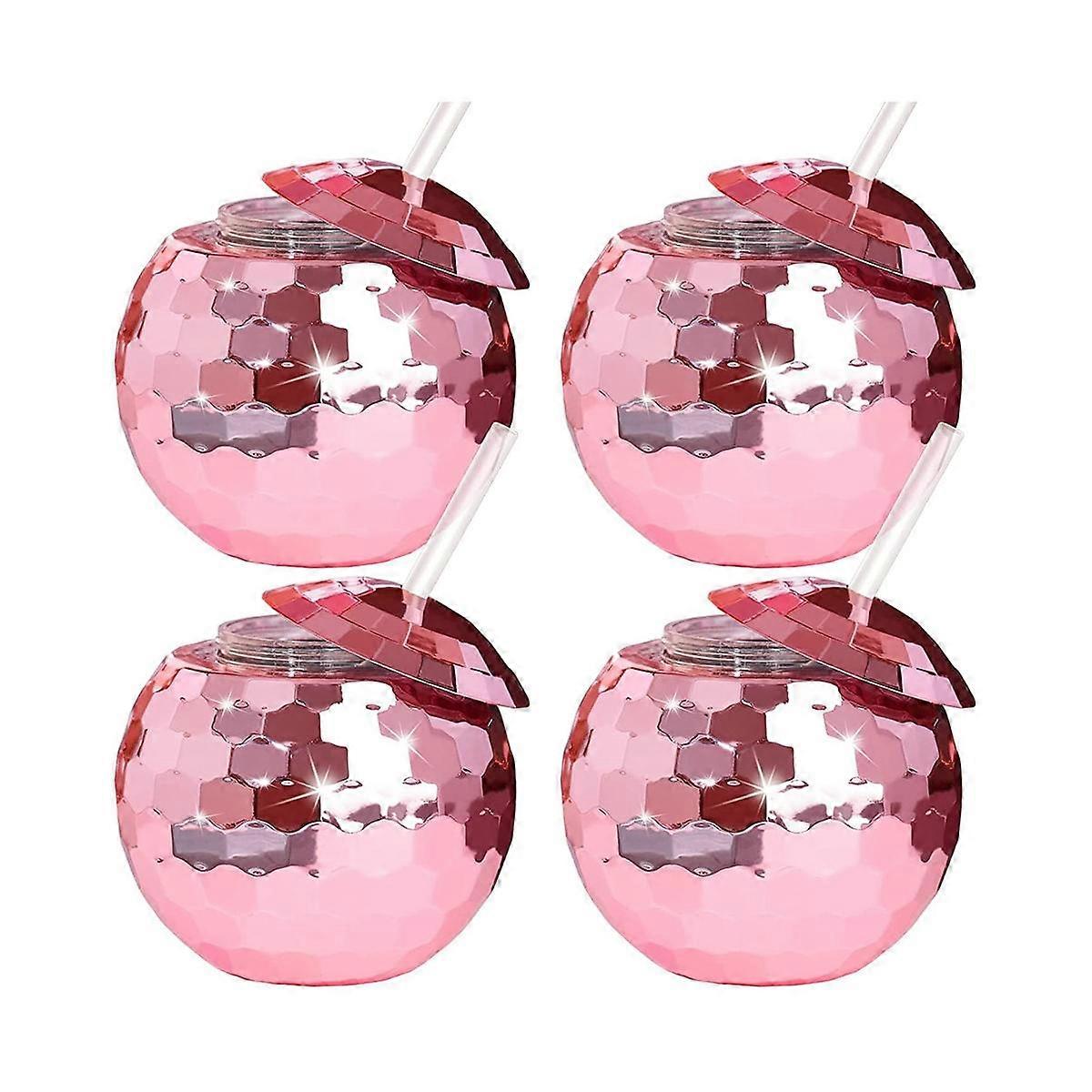 4PCS Disco Ball Cups Unique Cocktail Glasses Bar Tools Party Glasses Flashlight Straw Wine Goblets