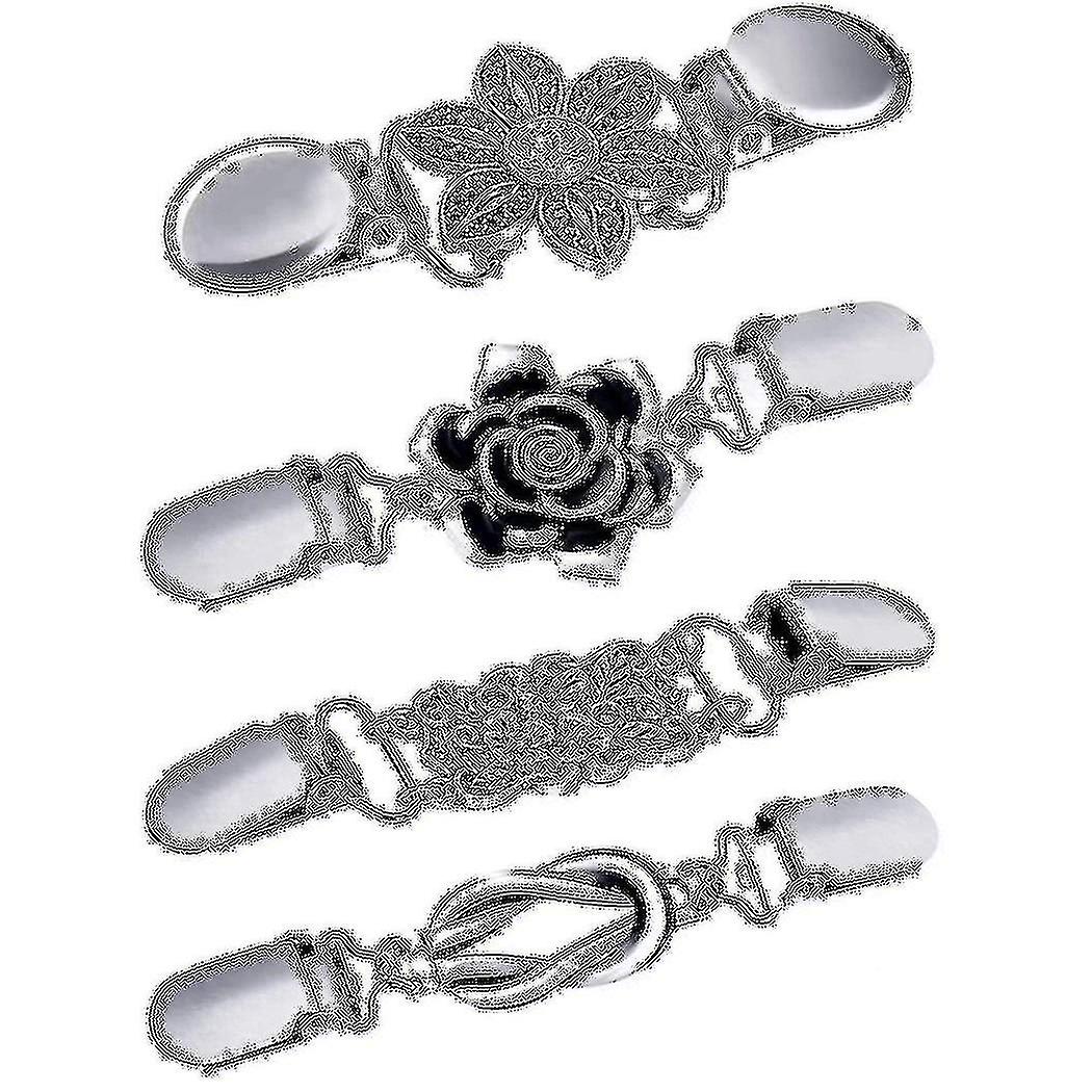 4 Pieces Vintage Sweater Shawl Clips Retro Cardigan Clips Dress Shirt Brooch Clips For Women Girls