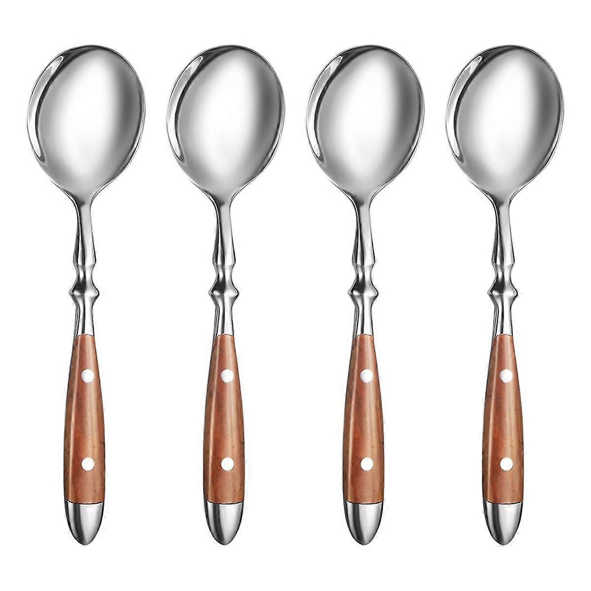 4Pcs Soup Spoons Set,Stainless Steel Spoons with Comfortable Bakelite Handle,Heavy-Weight Metal Round Spoons