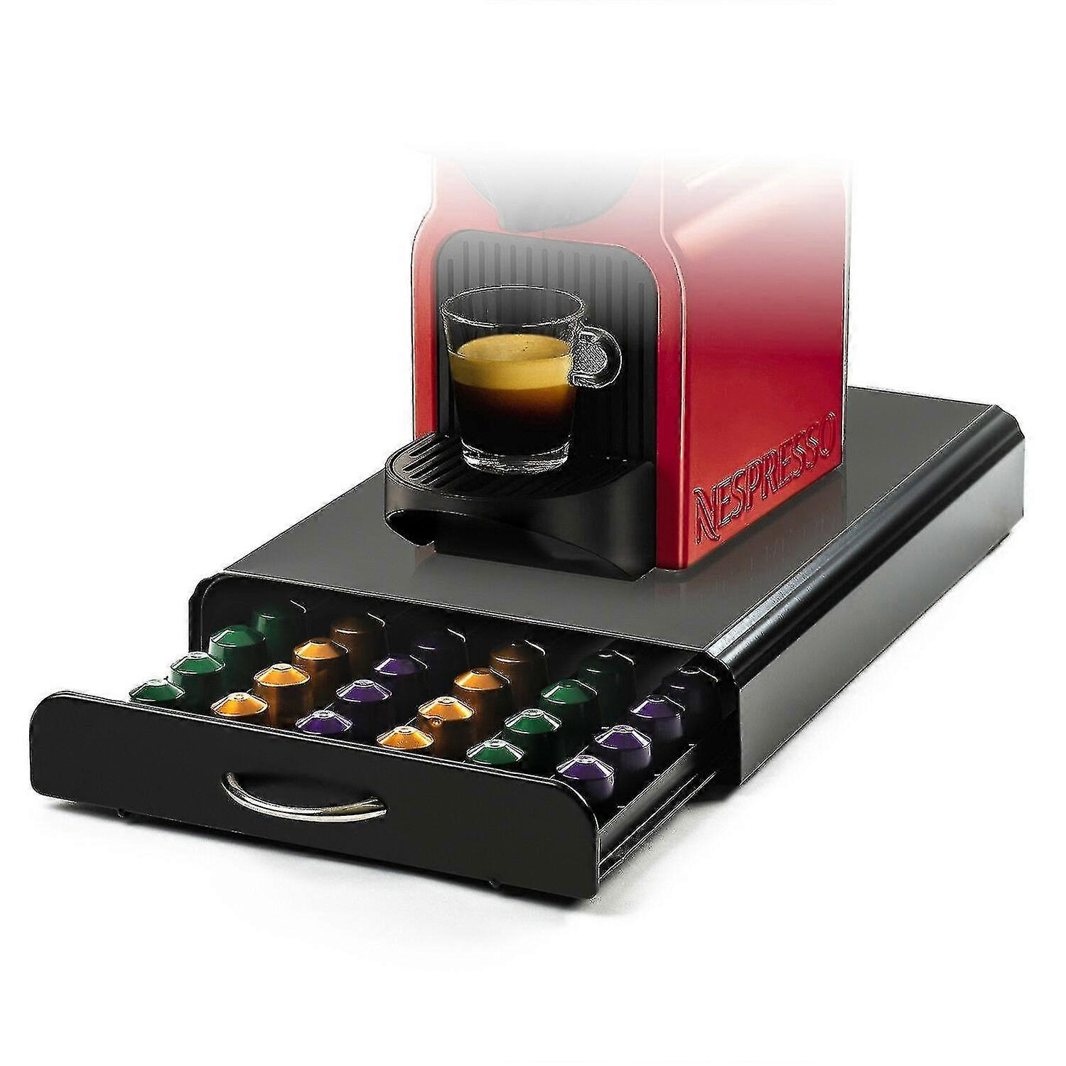 40 Pod Holder Stylish Black Capsule Organiser Drawer Storage & Coffee Machine Stand Non-slip Feet - Compatible With Nespresso FT