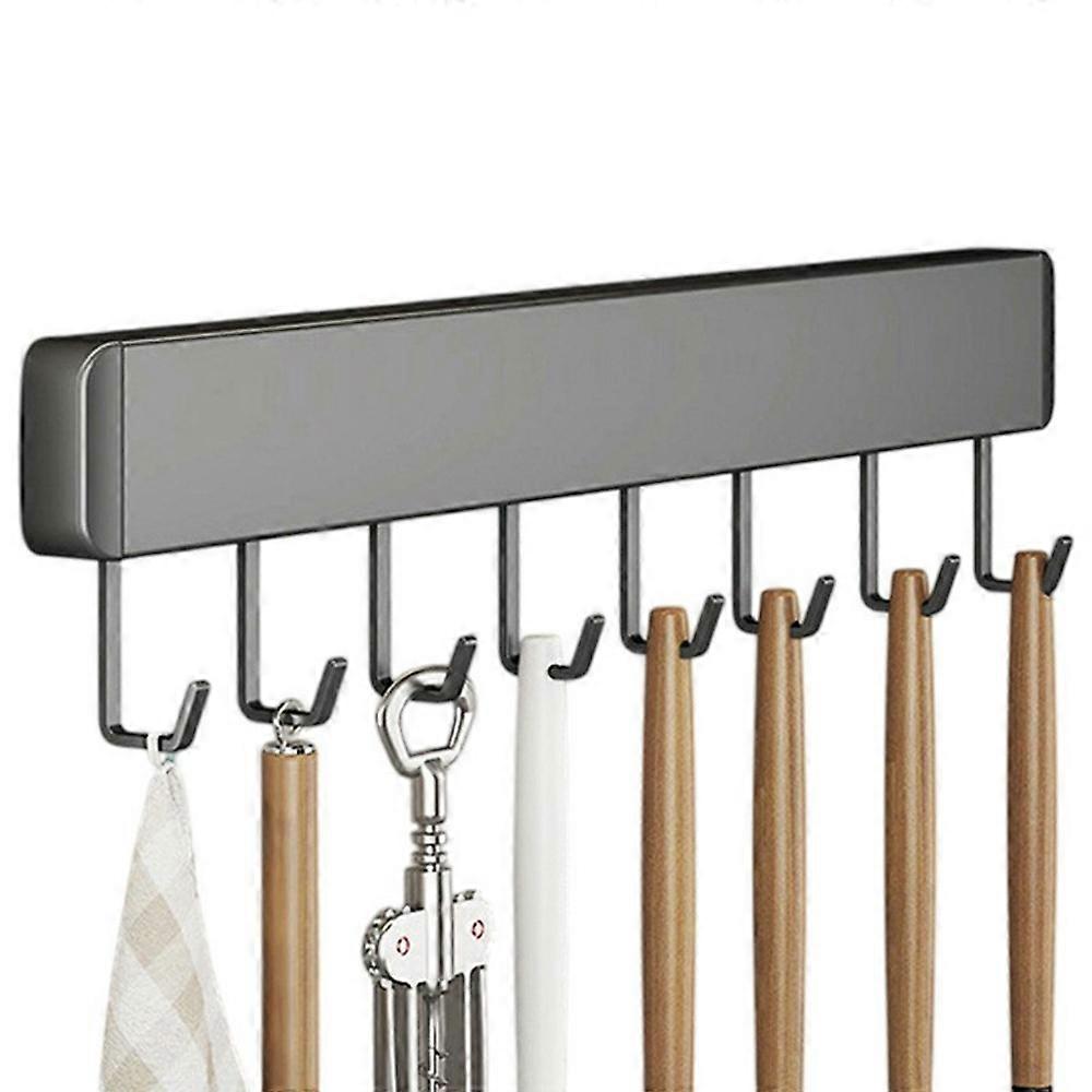 40cm 8-Hook Adhesive Kitchen Hanging Rack Wall Mounted Aluminum Spatula Spoon Towel Hanger