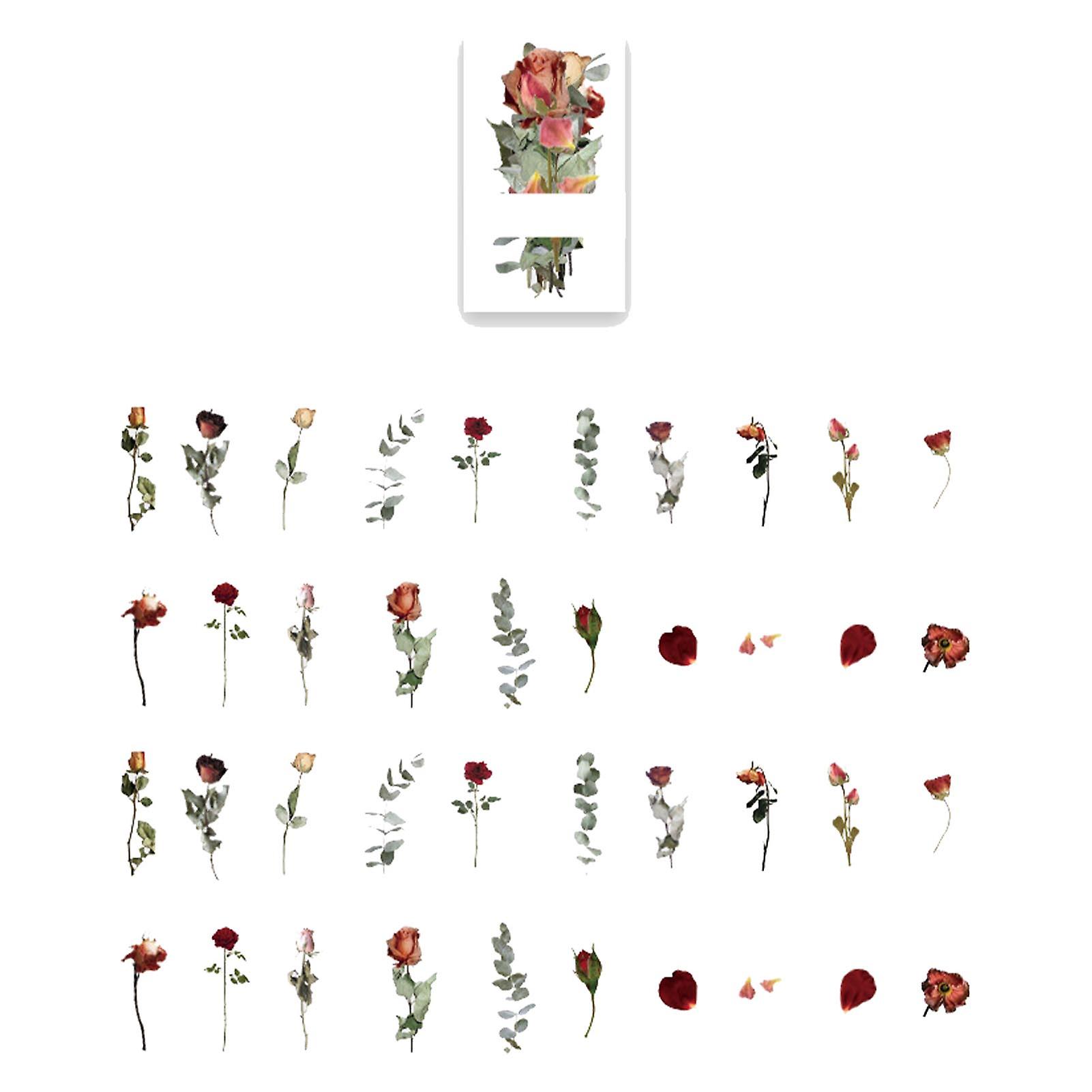 40 Pcs Flower Sticker Exquisite Beautiful Diverse Decorative Stickers for DIY Scrapbooking Journaling Type 1