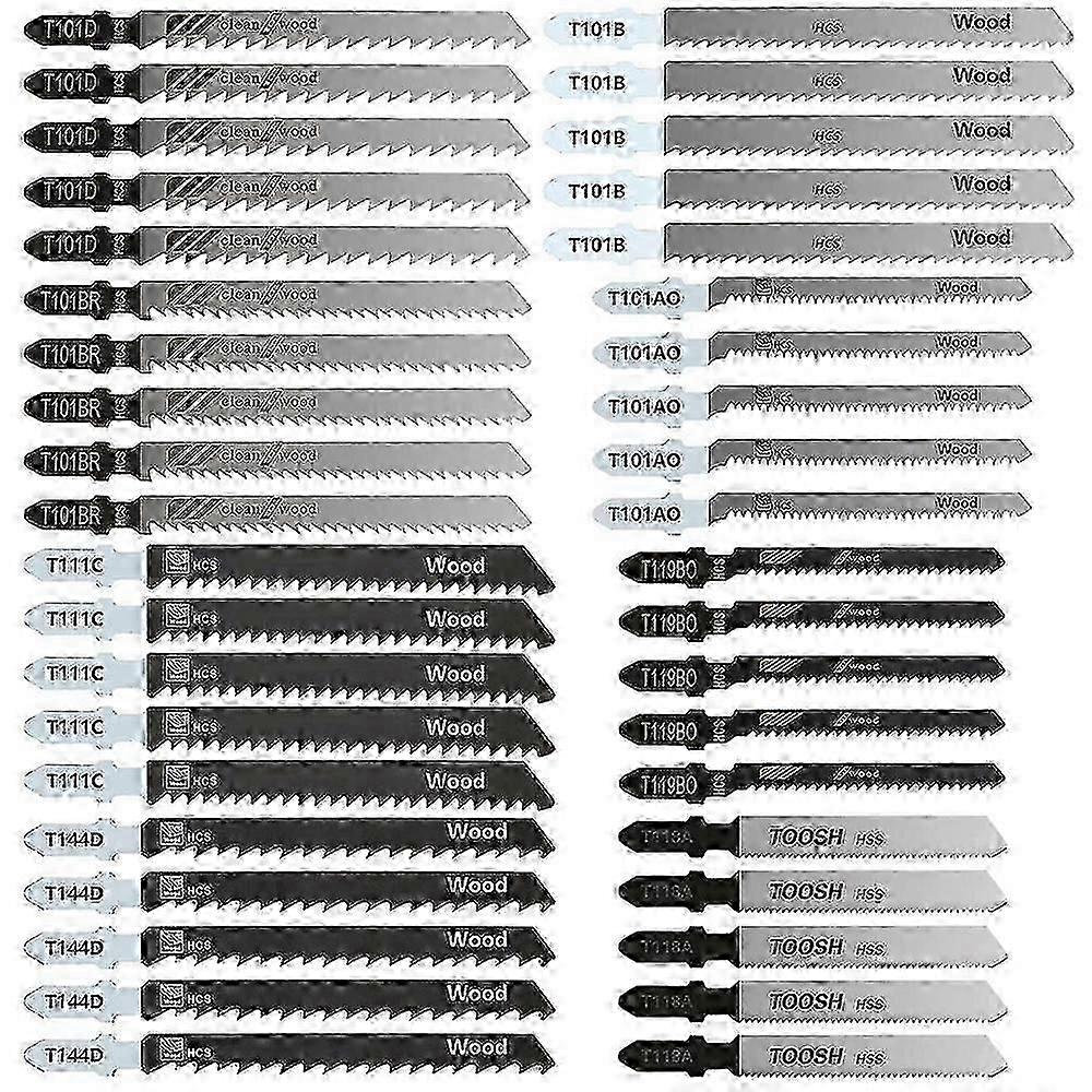 40Pcs Jigsaw Saws Blade Set, T Shank Woodworking Jig Saw Blades for Wood Plastic and Metal Cutting,Replace Jig Saw Blade js