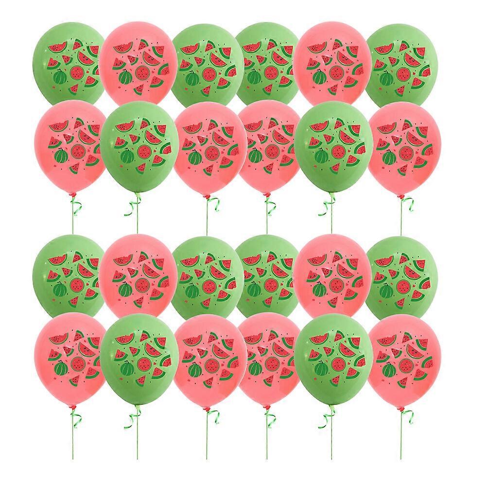 40Pcs Watermelon Pattern Balloons Durable Latex Balloons Fruit Printed Balloons Summer Watermelon-themed Party Supplies (Green Red for Each 20Pcs)