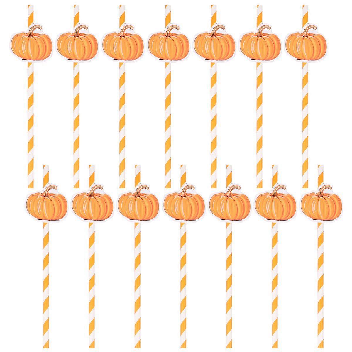 40pcs Pumpkin Paper Straw Striped Straws Halloween Decoration Straws Creative Straws for Party (Orange)