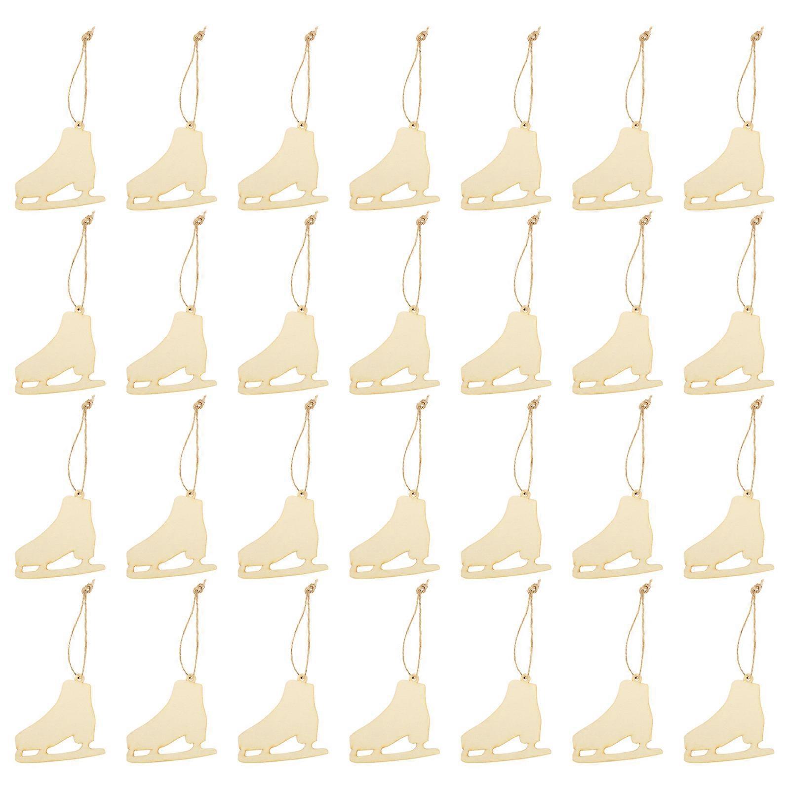 40 Sets Christmas Wooden Pendants Festival DIY Wood Pieces Hanging Pendants