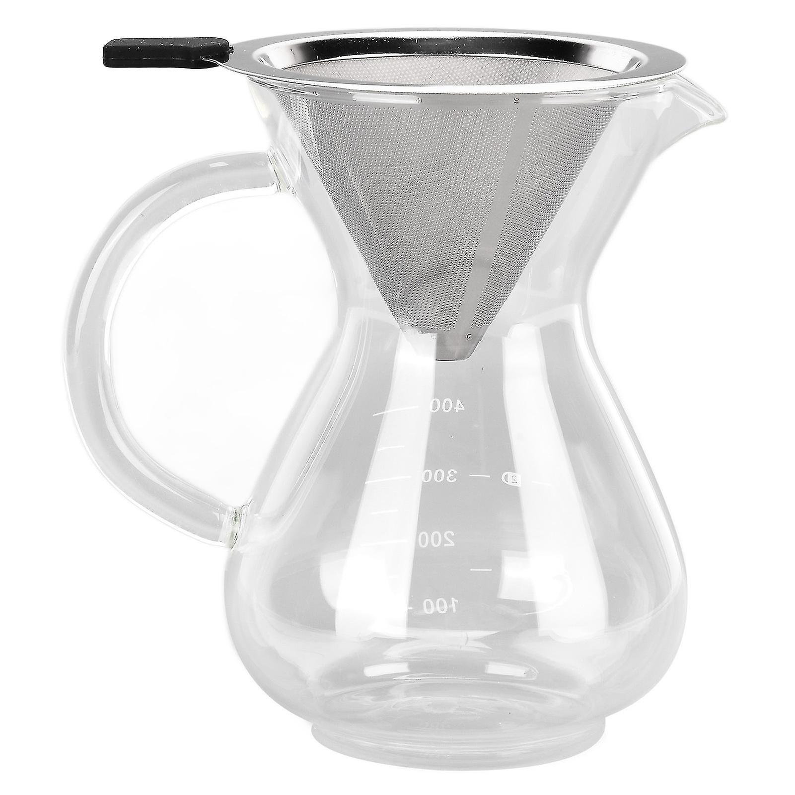 400ml Glass Coffee Pot Kettle Heat Resistant Pour Over Coffee Maker with Stainless Steel Filter for Home KitchenRound Base
