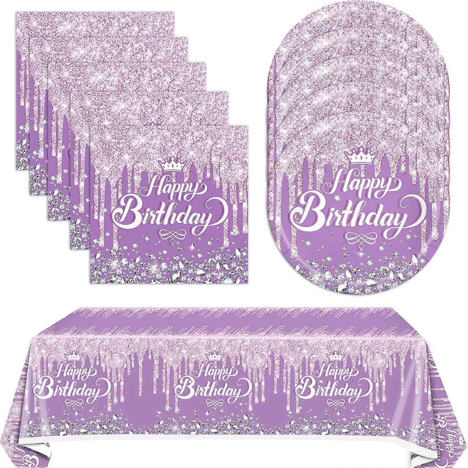 41Pcs Purple Birthday Tableware Set for Happy Birthday Table Decorations, Purple Theme Birthday Dessert Plates Napkins Tablecloths for 20 Guests