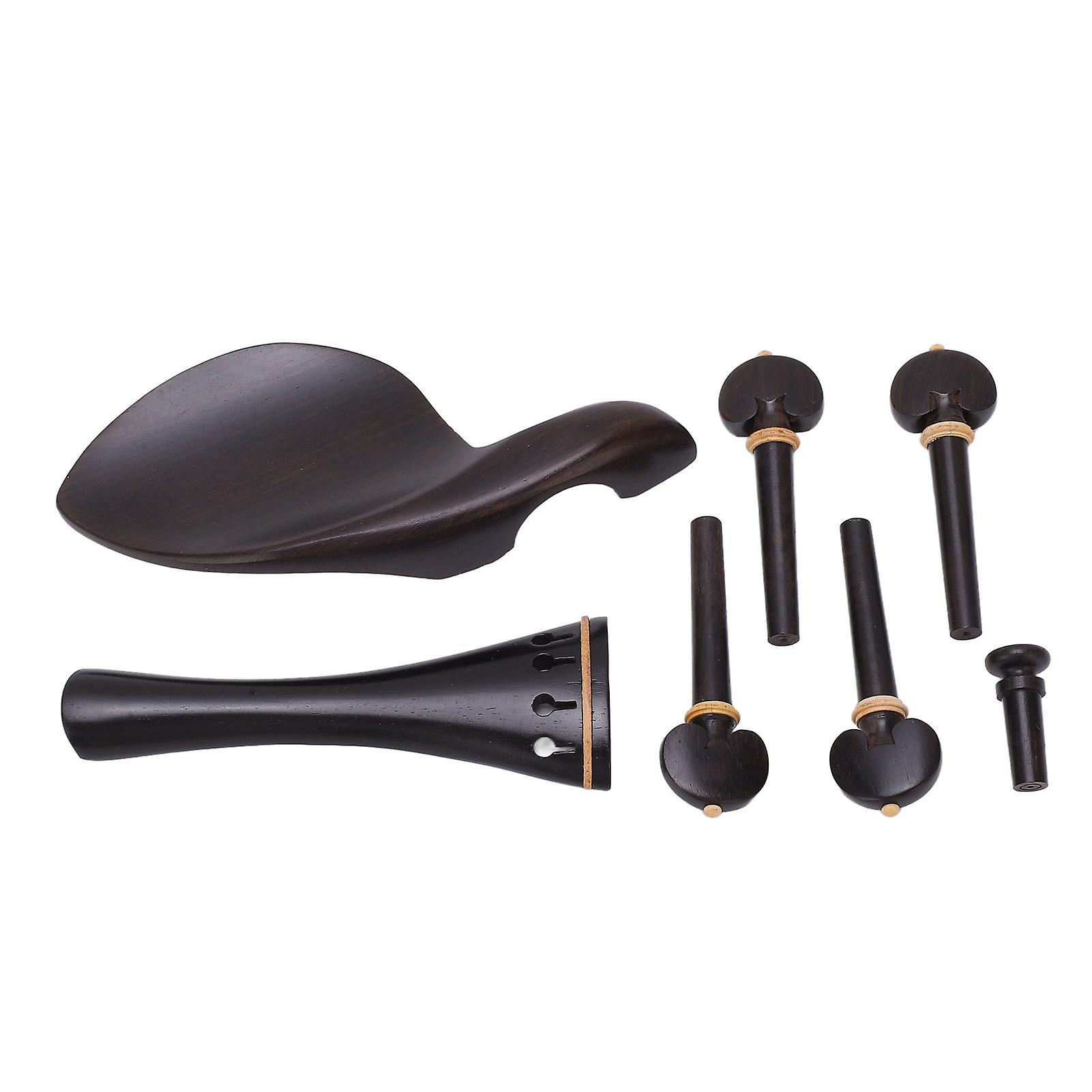 4/4 Violin Accessory Set Ebony Inlaid Boxwood Full Size Violin Accessories for Music Lover's Best Gift