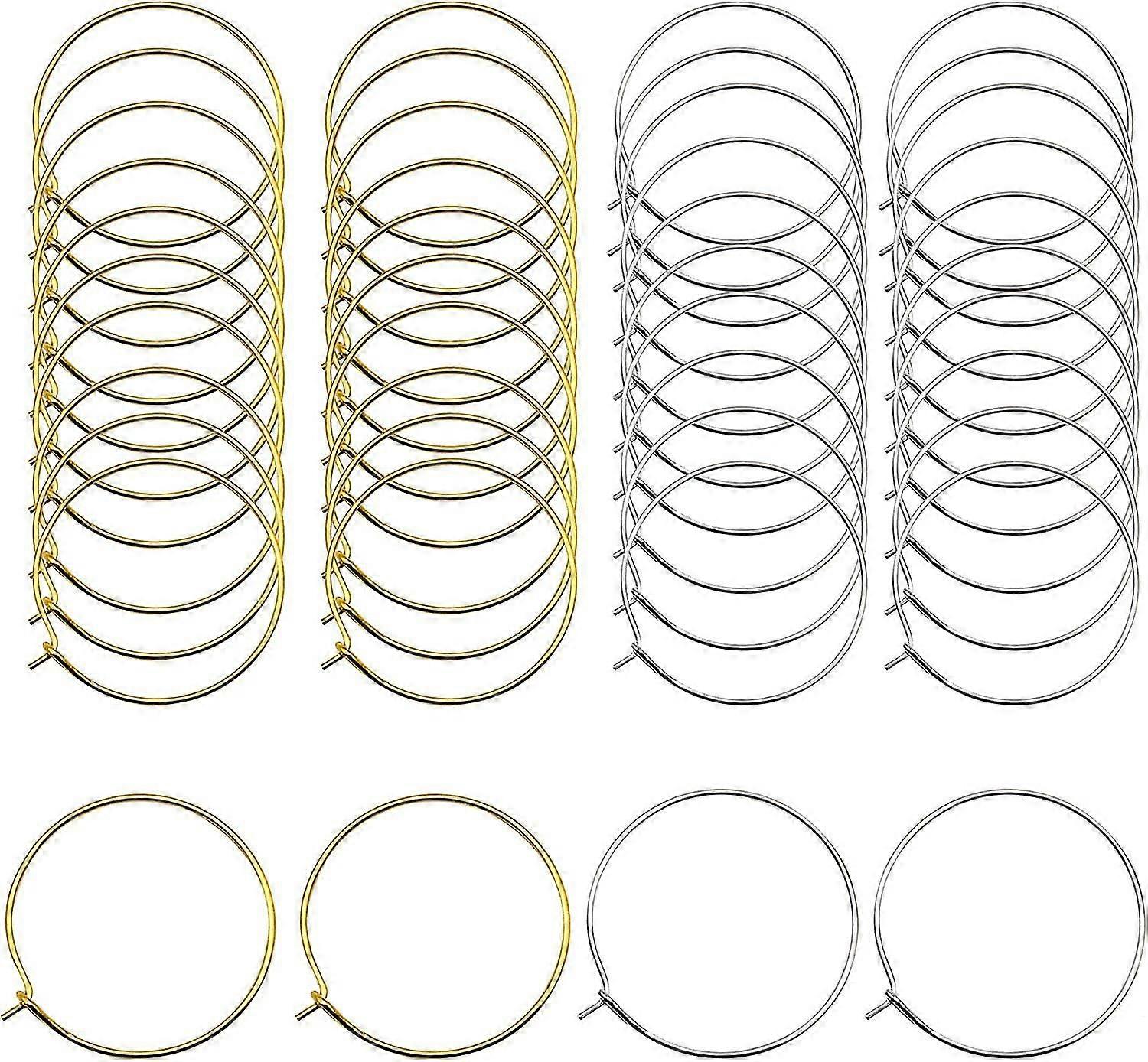 44 Pcs Wine Glass Charm Rings Wire Hoops Earring Hoops For Diy Jewellery, Wine Glass Markers (30mm)