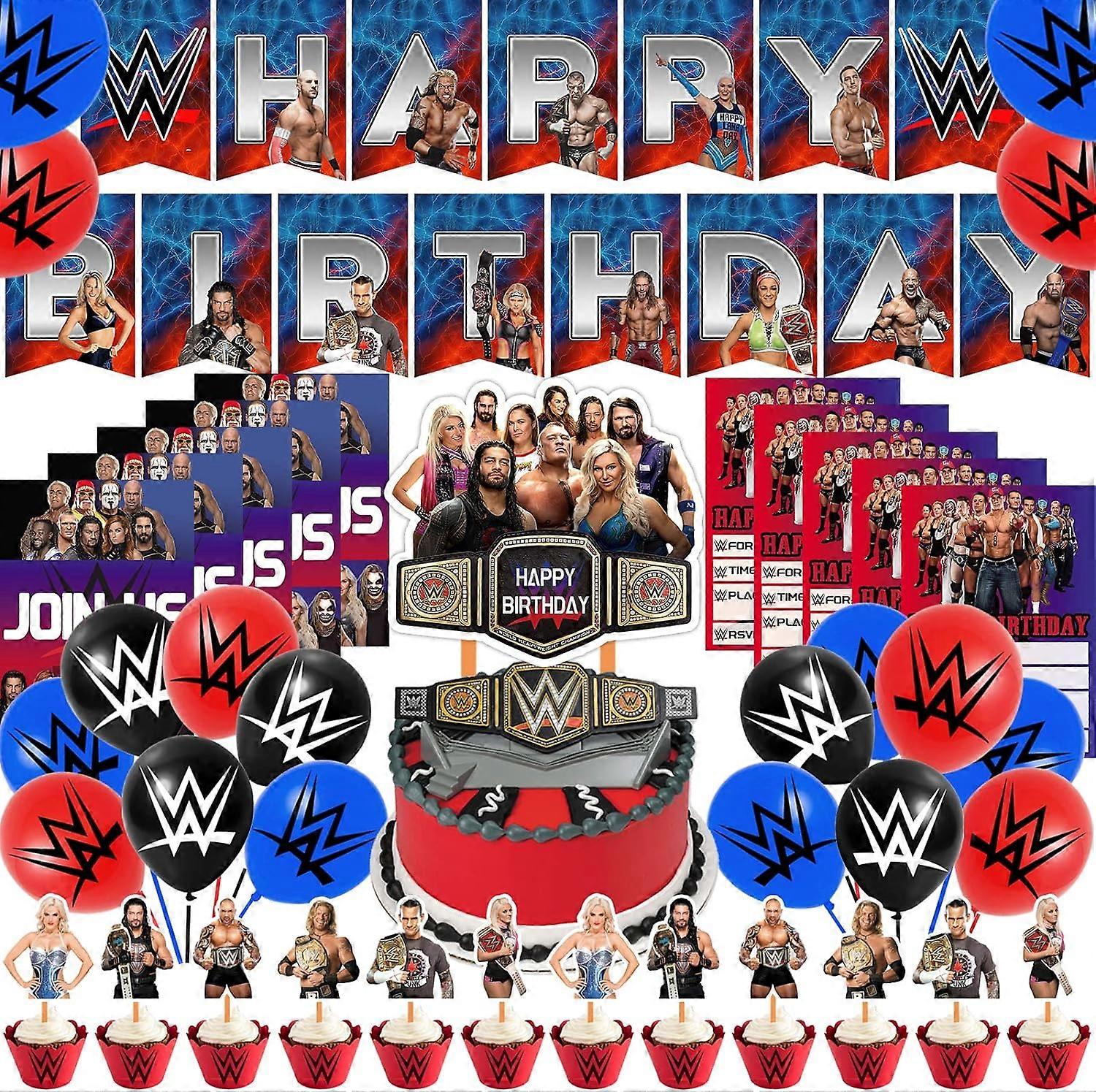 44 Pcs Boxing Party Supplies, Wrestling Fighting Theme Birthday Party Set, Includes Happy birthday banner, Cake topper, Cupcake Toppers