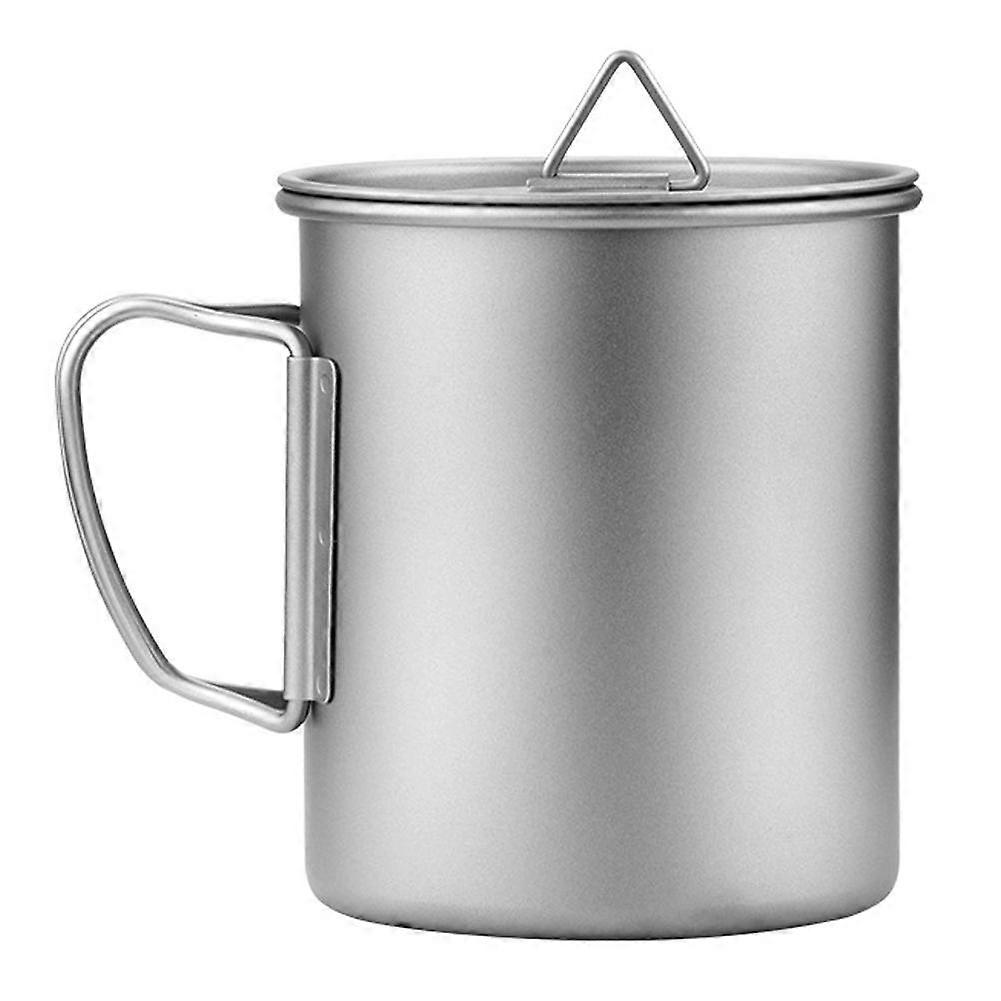 450ml Titanium Pot Water Mug Cup with Lid Foldable Handle Outdoor Camping