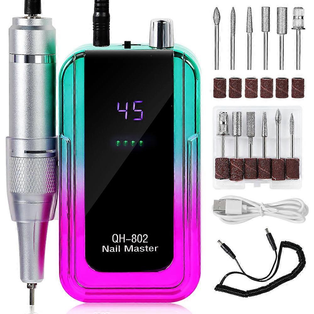 45000RPM electric nail drill, USB charging, professional manicure tool, portable nail care set colorful green