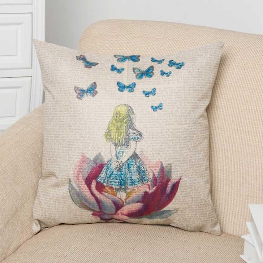 Lotus Flower Girl National Flag 45x45 Cm Cotton Linen Cushion Cover Waist Pillow Case Living Room Chair Sofa Home Decoration