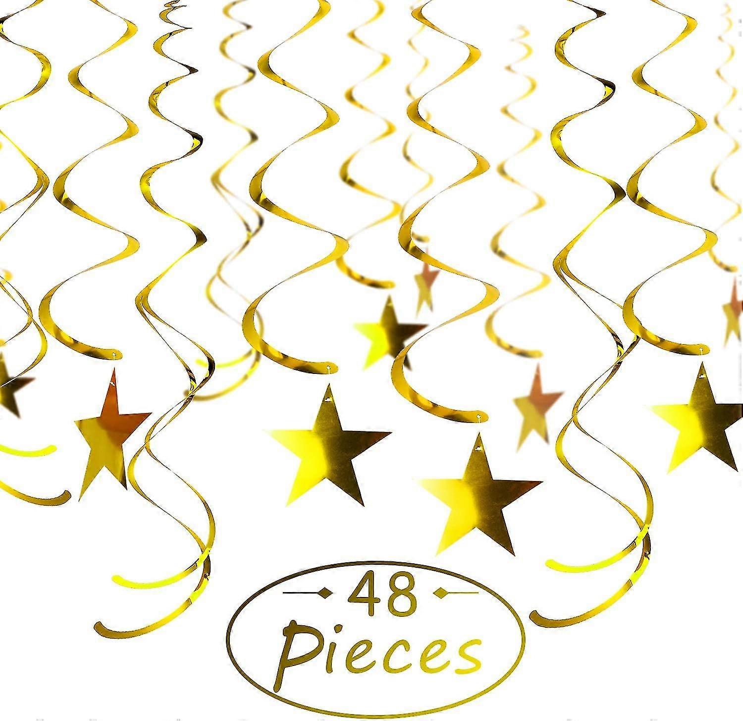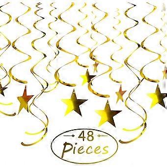 48 Pieces Gold Stars Swirls Hanging Shiny Twinkle Foil Swirl Decorations Hanging Swirl For Ceiling Whirls Wedding Birthday Party Christmas Halloween